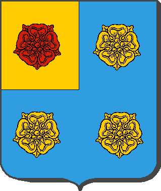 L'écartelé rappelle la famille de Beuvillers, seigneur du lieu, qui portait "d'azur, aux trois roses d'or, une en chef à senestre, et deux en pointe ; au franc-quartier du même chargé d'une rose de gueules" :