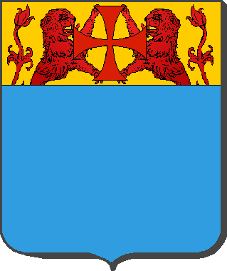 D'azur, au chef d'or aux deux lions issants affrontés de gueules, soutenant de leurs pattes une croisette pattée du même.