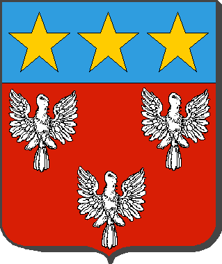 De gueules, à trois alérions d'argent ; au chef cousu d'azur chargé de trois étoiles d'or.