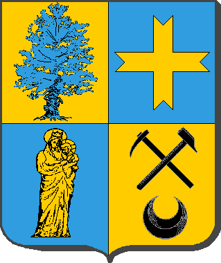 Écartelé : au 1er d'or, au frêne arraché accolé d'un lierre, le tout d'azur ; au 2e d'azur, à la croix fourchée de huit pointes d'or ; au 3e d'azur, à la Vierge à l'enfant Jésus d'or ; au 4e d'or, au pic et au marteau de mineur passés en sautoir et au croissant mis l'un sur l'autre le tout de sable.