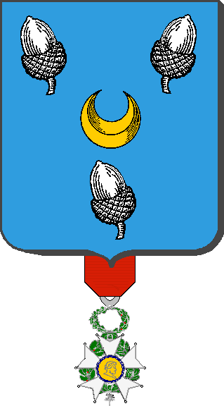 D'azur, à trois glands versés d'argent accompagnés en abîme d'un croissant d'or. |