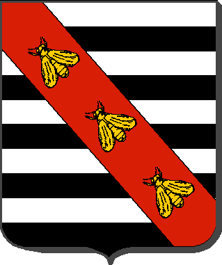 Burelé d'argent et de sable, à la bande de gueules chargée de trois abeilles d'or brochant sur le tout.