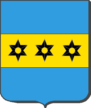 Tiercé en pal, d'azur, d'argent et de gueules, les insignes de la République d'or brochant sur le tout. |