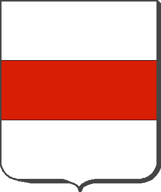Parti : au 1er de gueules, à trois bandes courbées d'argent ; au 2nd d'argent, à la fasce de gueules ; une lance d'or mise en pal brochant la partition.