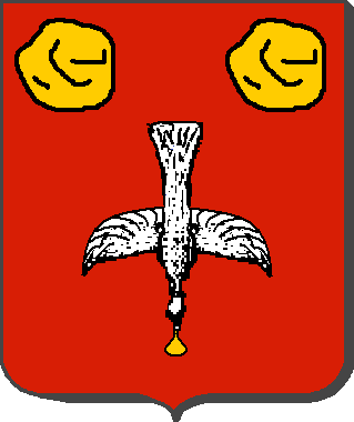 De gueules, à la colombe fondant d'argent tenant en son bec la Sainte Ampoule d'or, accompagnée en chef de deux cailloux du même.