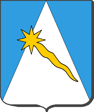 D'argent, chapé d'azur, à la comète d'or en bande brochant sur le tout.