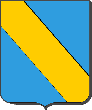 Ecartelé : aux 1er et 4ème de gueules, au pal de vair ; aux 2ème et 3ème d'azur, à la bande d'or.