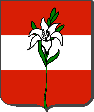 De gueules, à la fasce d'argent, au lys du jardin d'argent, tigé et feuillé de sinople, posé en pal, mouvant de la pointe et brochant sur le tout.