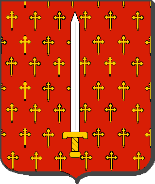 De gueules semé de croisettes recroisetées au pied fiché d'or, à une épée haute d'argent garnie aussi d'or brochant sur le tout.