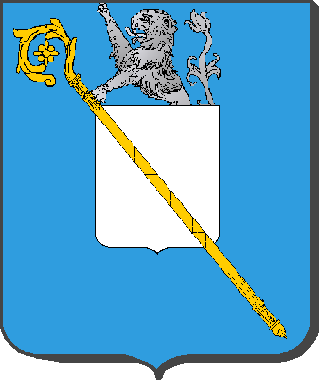 D'azur, à l'écusson d'argent en abîme, sommé d'un lion issant du même ; à la crosse d'or posée en bande brochant sur le tout.