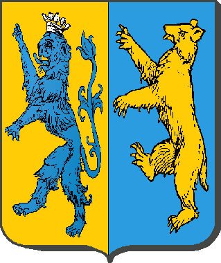 Parti : au 1er d'or, au lion d'azur couronné d'argent ; au 2nd d'azur, à l'ours rampant d'or.