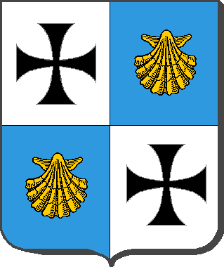 Ecartelé : aux 1er et 4e d'argent, à la croix pattée alésée de sable ; aux 2e et 3e d'azur, à la coquille d'or.