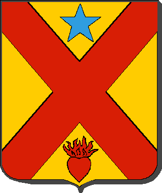 D'or, au sautoir de gueules cantonné en chef d'une étoile d'azur et en pointe d'un coeur enflammé aussi de gueules.