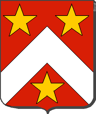 De gueules, au chevron d'argent accompagné de trois étoiles d'or, deux en chef et une en pointe. | |