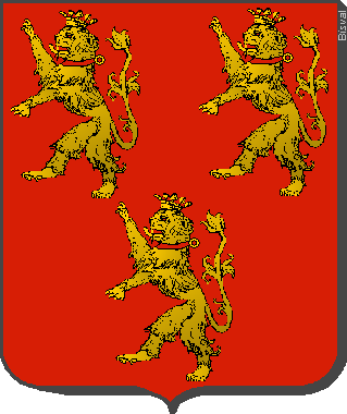 De gueules, à trois lions couronnés d'or, colletés de gueules et bouclés d'or, 2 - 1. |