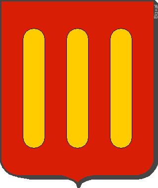 D'or, à trois bandes de gueules, accompagnées en chef d'un lambel d'argent. | |