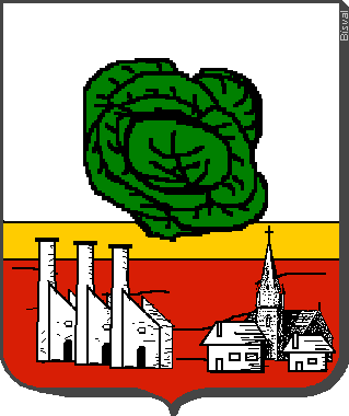 D'argent, au chou de sinople soutenu par une divise abaissée d'or posée sur une terrasse de gueules ; à trois usines d'argent à dextre et au village du même à senestre brochant sur la divise et la terrasse.