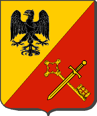 Taillé : au 1er d'or, à l'aigle au vol abaissé de sable ; au 2nd de gueules, à la clé d'or versée en bande le panneton à senestre passée en sautoir avec une épée basse du même posée en barre. |