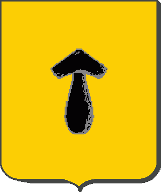 D'azur, au chevron d'or accompagné de trois massues du même, deux en chef et une en pointe. |